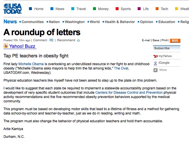 Home Well, it’s now in print! If you open today’s copy of USA Today, you’ll be able to see a letter written by your’s truly! Share this: Click to share on Facebook (Opens in new window) Facebook Click to share on X (Opens in new window) X Click to share on Reddit (Opens in new window) Reddit Like Loading... Related